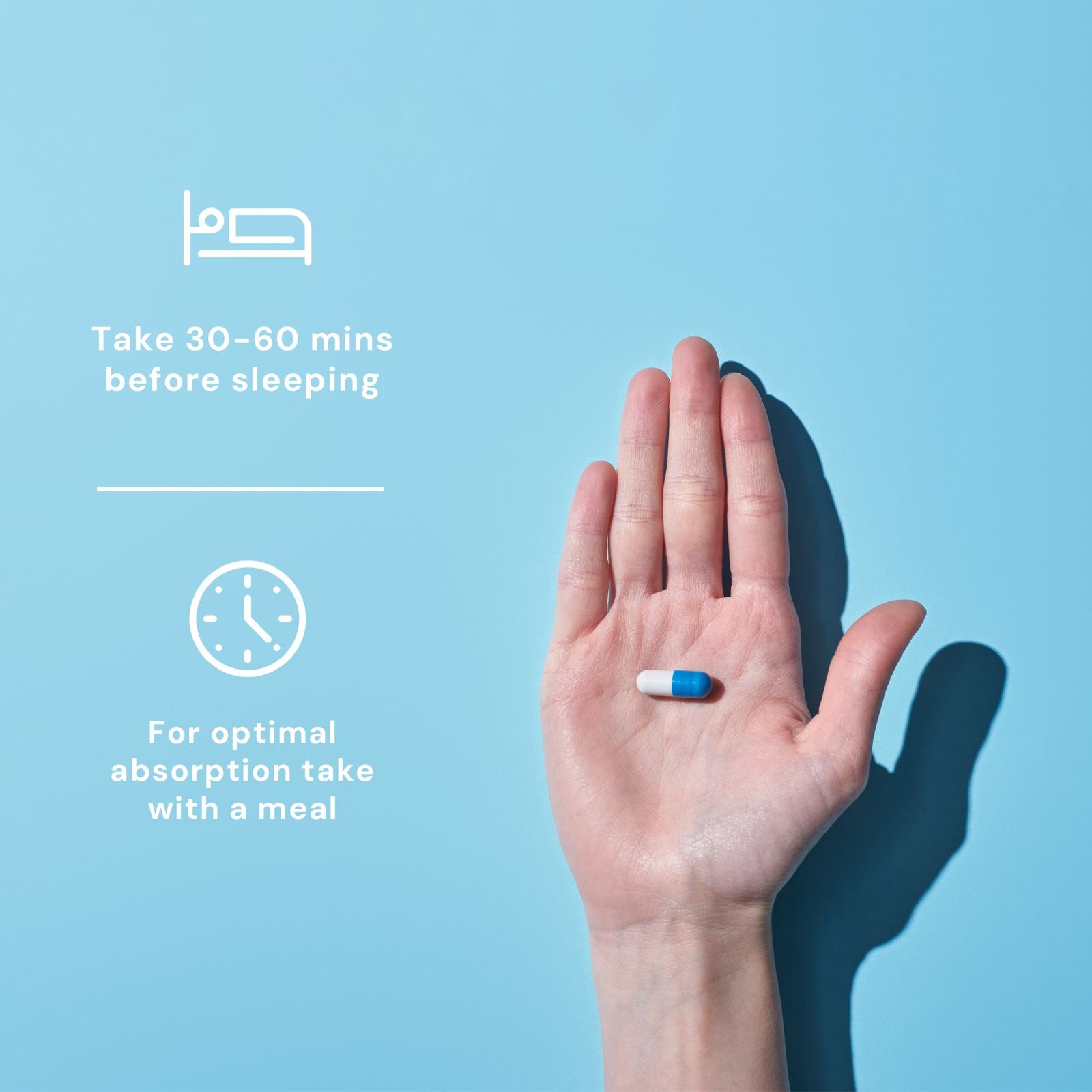 Take 1-2 capsules 30 minutes before bedtime. For best results, use consistently as part of your nightly routine.