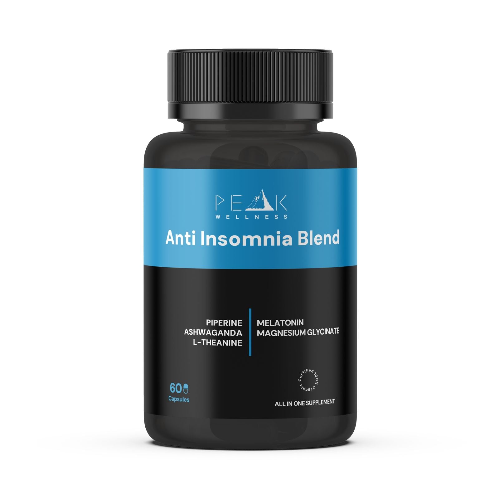 The Anti-Insomnia Blend combines natural ingredients like Melatonin, L-Theanine, and Ashwagandha to promote relaxation, reduce stress, and regulate sleep cycles. It helps you fall asleep faster, stay asleep longer, and wake up feeling refreshed without the groggy after-effects of traditional sleep aids.